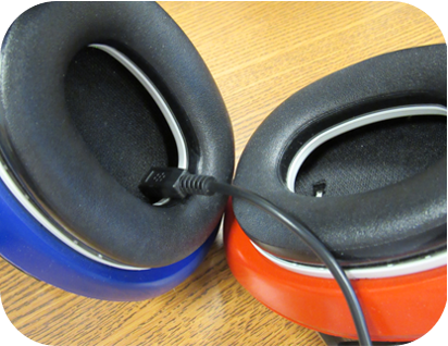 To wake the WAHTS from idle, tap the blue ear cup robustly. This will activate the “shake-to-wake” feature. Looking closely through the black cloth inside the blue ear cup, flashing green and blue lights will be visible after the headset has booted up and is ready for operation.