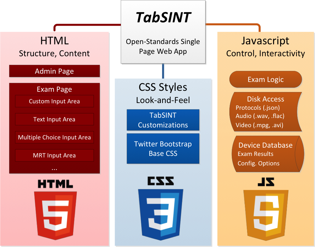 The TabSINT tablet application is built using the three primary web technologies: HTML5, CSS3, and Javascript.