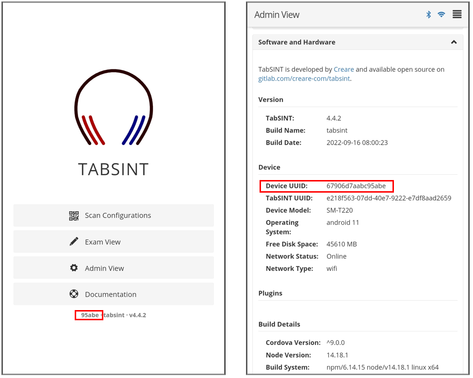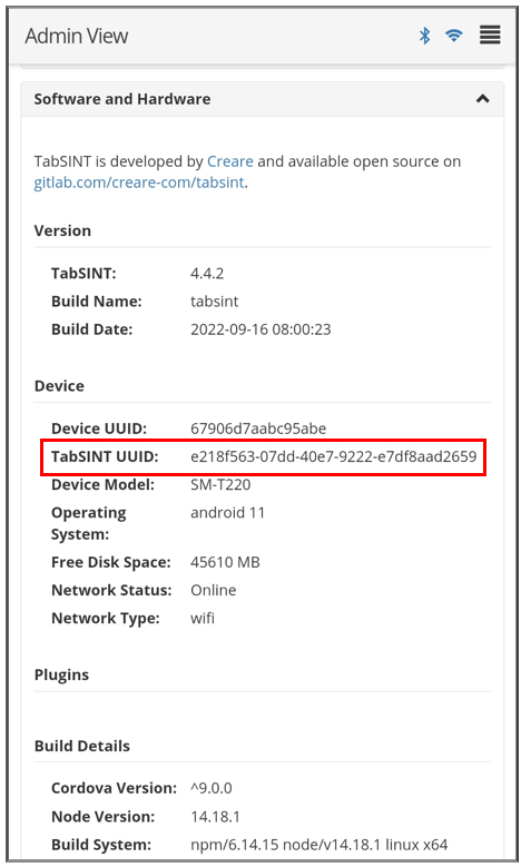 In TabSINT you can view the Device UUID and TabSINT UUID.