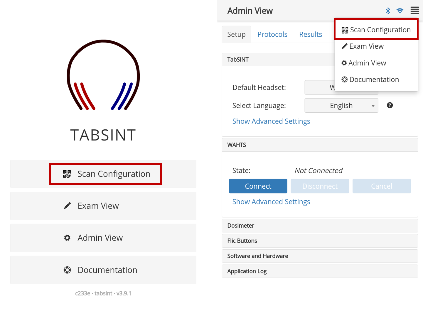 This QR Code can now be scanned directly by a second tablet. On the second tablet, either from the home screen or by selecting the menu in the upper right corner of the Admin View, select Scan Configuration